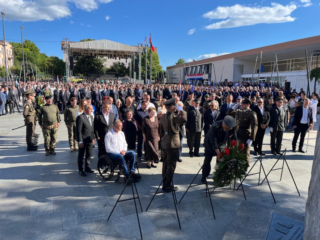 U jutarnjim satima položeni su vijenci i zapaljene svijeće kod Spomenika hrvatske pobjede “Oluja ’95”, u znak zahvalnosti i trajnog sjećanja na sve one koji su dali svoj život za slobodnu Hrvatsku.