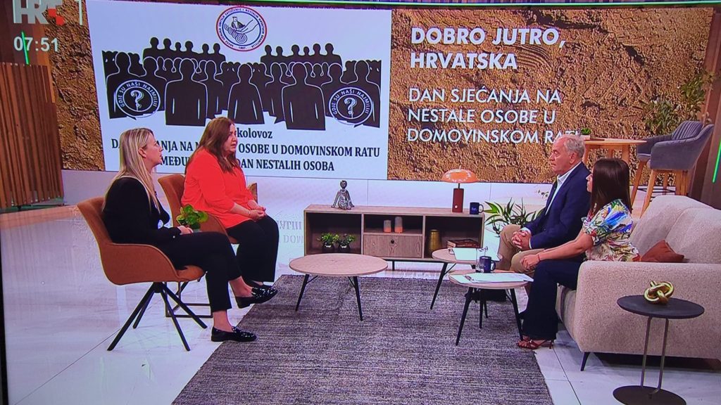 U emisiji je sudjelovala zajedno s dr. sc. Anom Filko, ravnateljicom Uprave za zatočene i nestale pri Ministarstvu hrvatskih branitelja.