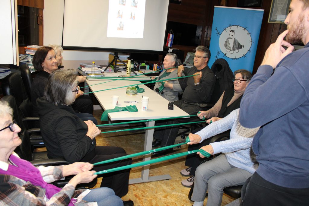 Radionica je osmišljena s ciljem jačanja tjelesne pokretljivosti kroz jednostavne vježbe s elastičnim trakama, kao i pružanja psihološke podrške kroz razgovor, međusobno dijeljenje iskustava i druženje. U vedroj i opuštenoj atmosferi, sudionici su se aktivno uključili u obje aktivnosti, a posebno nas veseli međusobna podrška i osmijesi koji su obilježili ovaj susret.