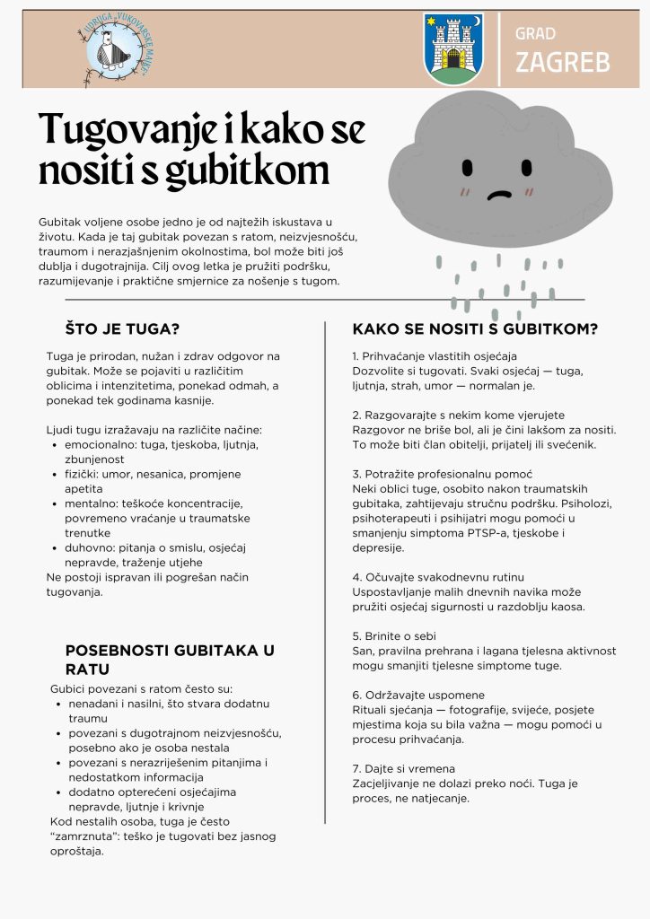 Predstavljamo prvi letak u nizu – „Tugovanje i kako se nositi s gubitkom“.